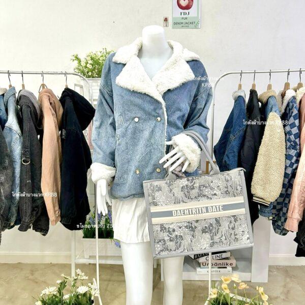 แจ็คเกตยีนส์บุขน Fur Denim jacket ป้ายแอปเปิ้ล