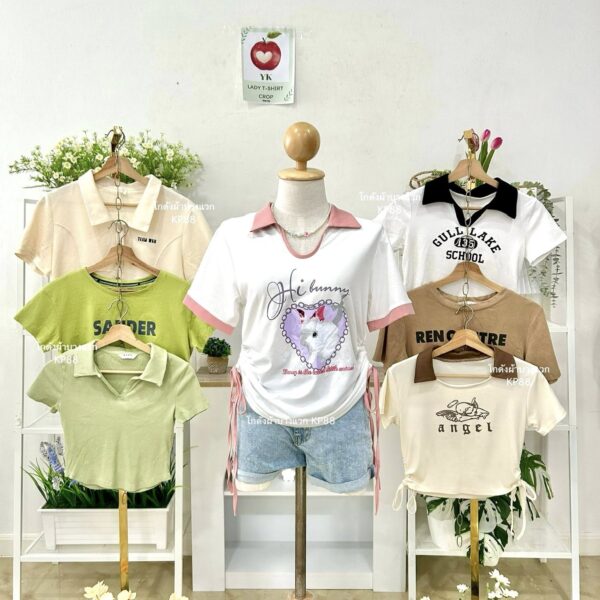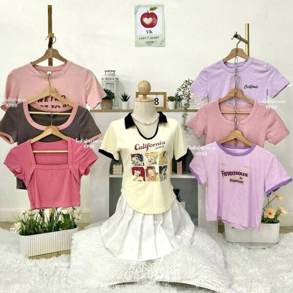เสื้อยืดครอป YK ป้ายแอปเปิ้ล