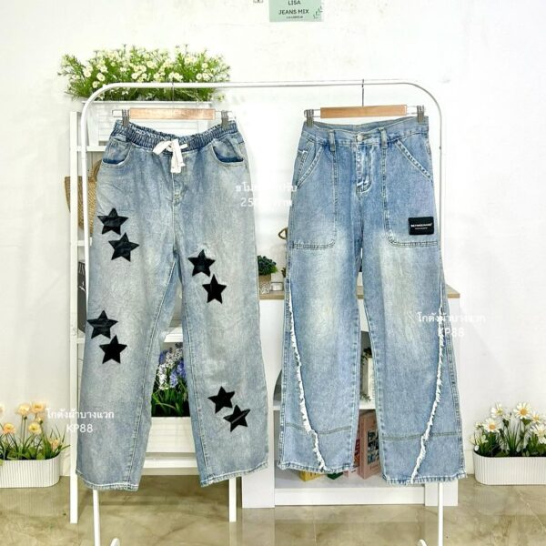 Lisa-M กางเกงยีนส์ลิซ่าผสม ป้ายแอปเปิ้ล