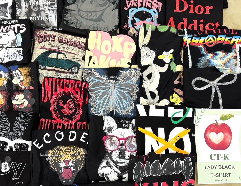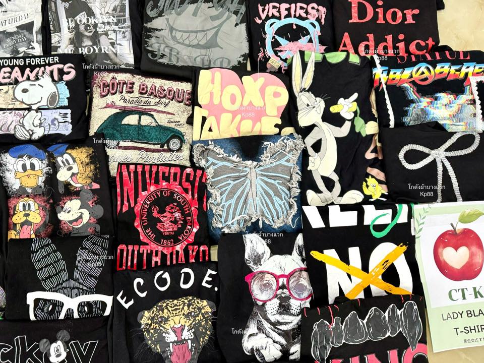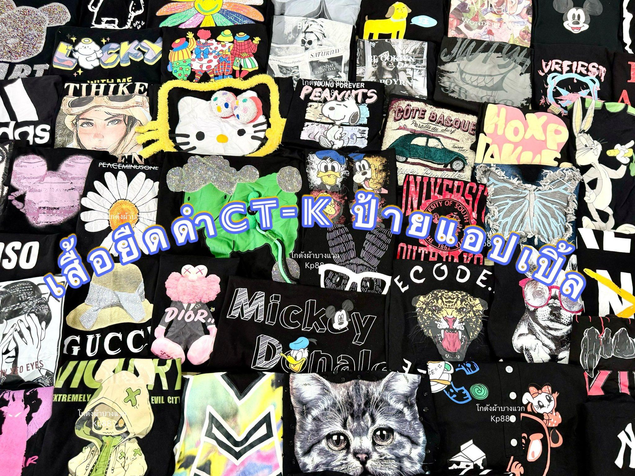 *✰₊˚เสื้อยืดแฟชั่นดำล้วน 𝐂𝐓-𝐊 🐾 ป้ายแอปเปิ้ล🍎🍏 ประมาณ230 ตัว เสื้อยืดสไตล์วัยรุ่นผ้าใหม่สกรีนแน่นตึ๊บ #ขายดี แน่นอน~