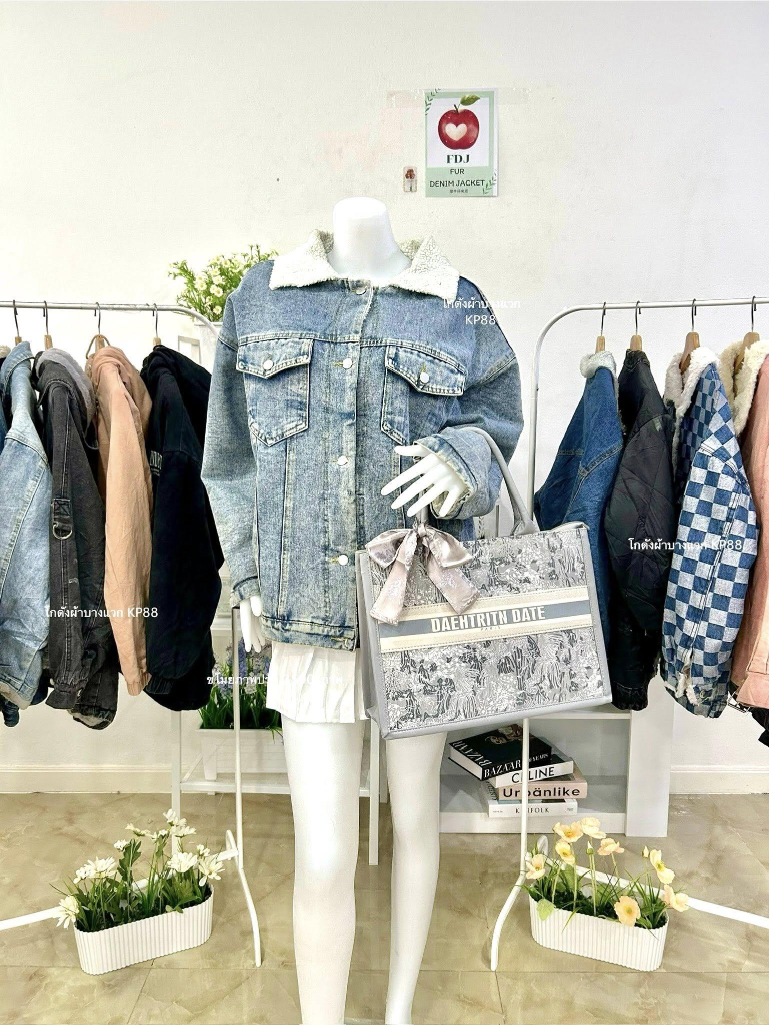 แจ็คเกตยีนส์บุขน Fur Denim jacket ป้ายแอปเปิ้ล