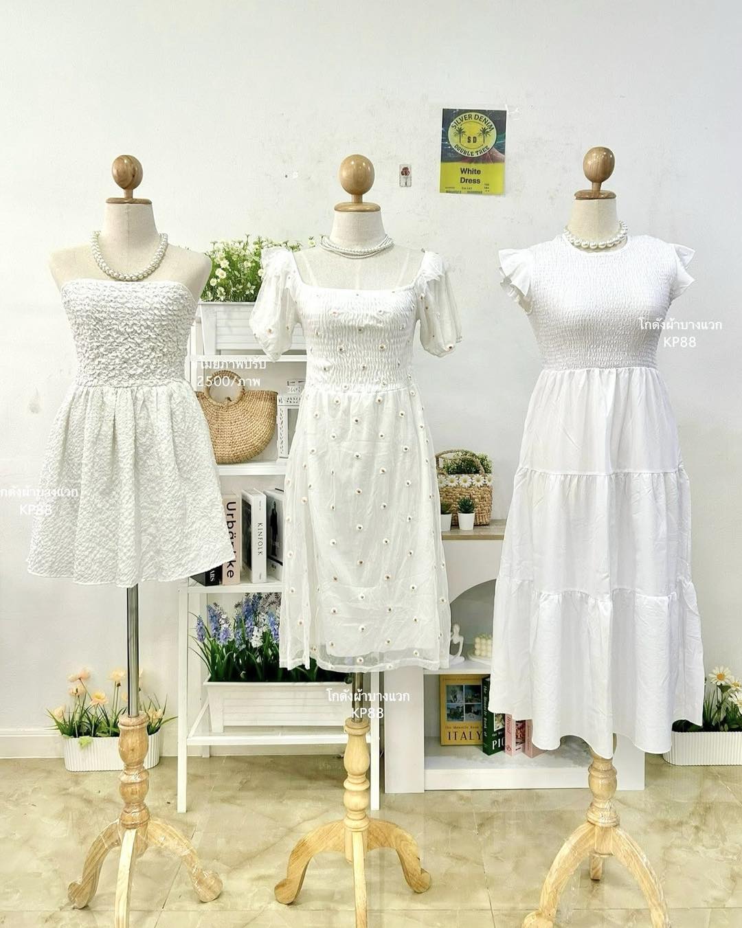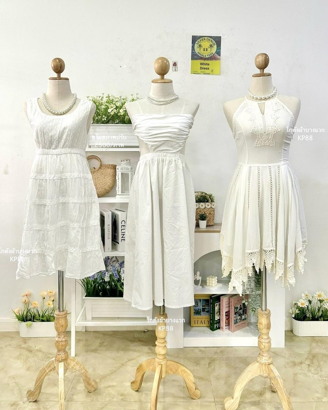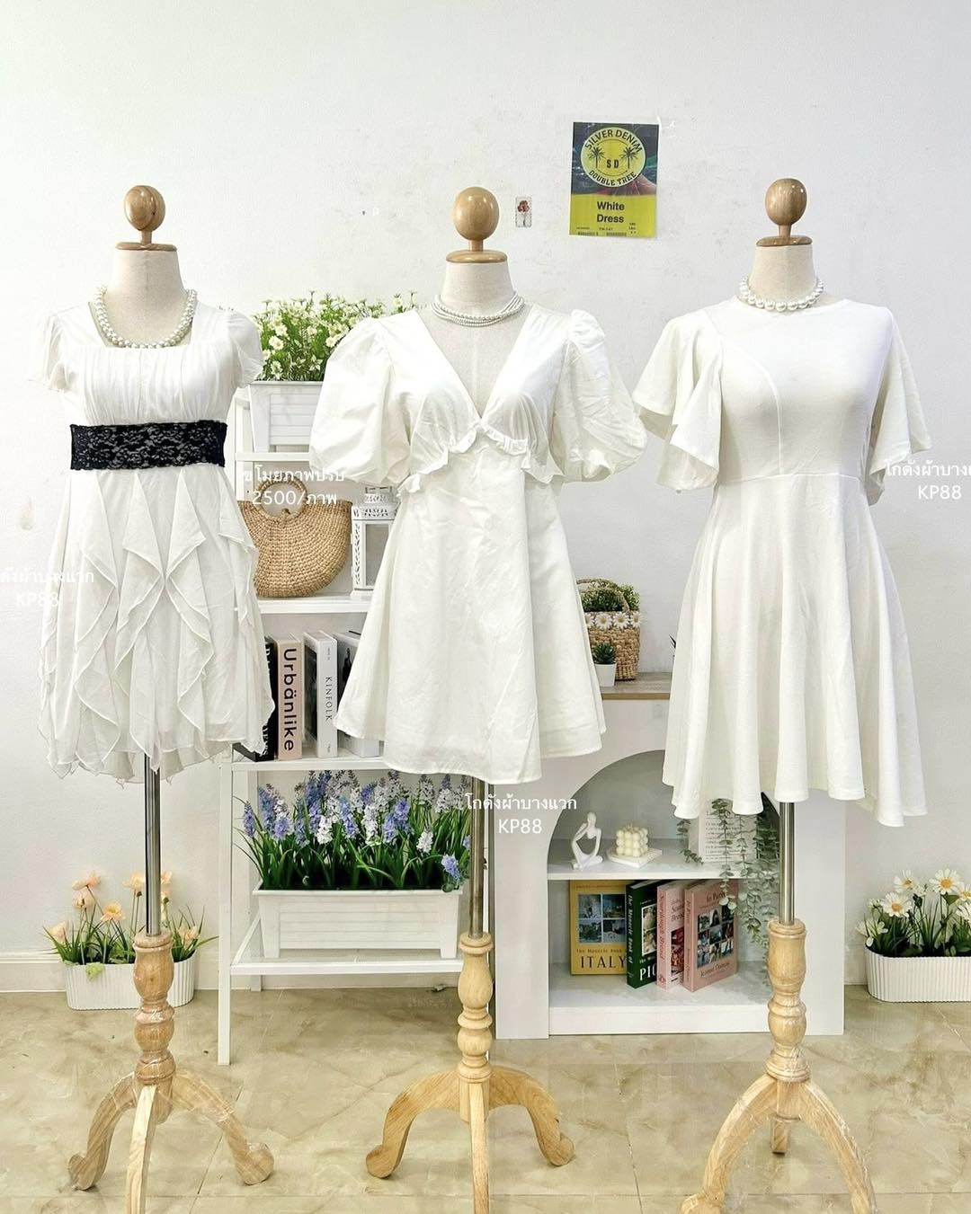 ༘ 𝑊ℎ𝑖𝑡𝑒 𝑑𝑟𝑒𝑠𝑠 ชุดเดรสขาวแฟชั่นป้ายSD