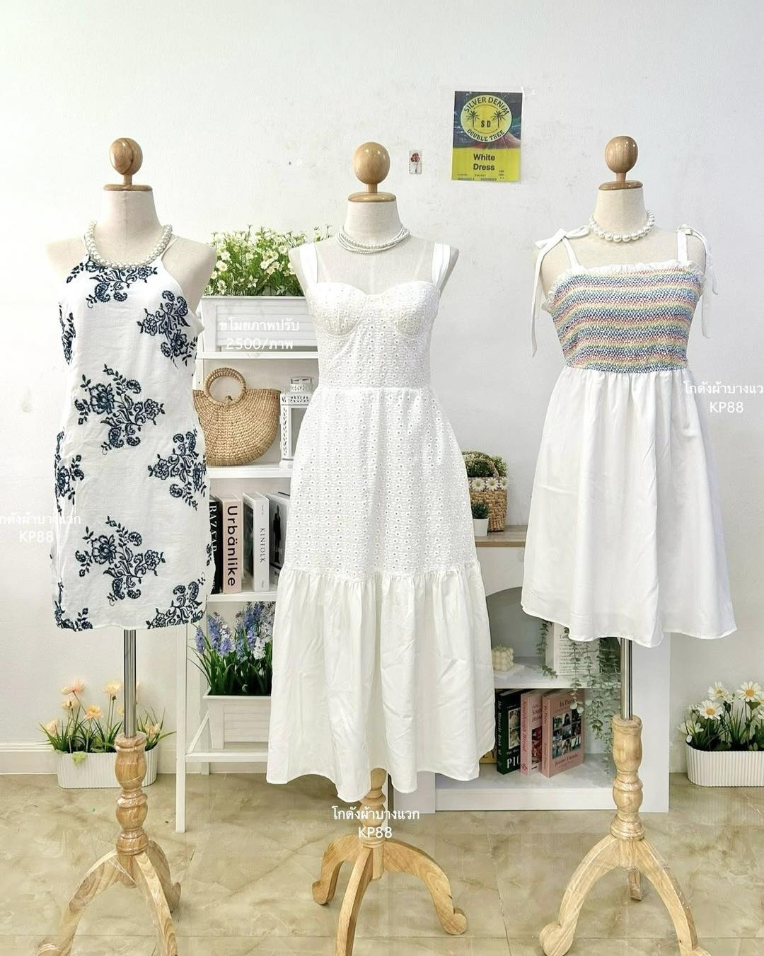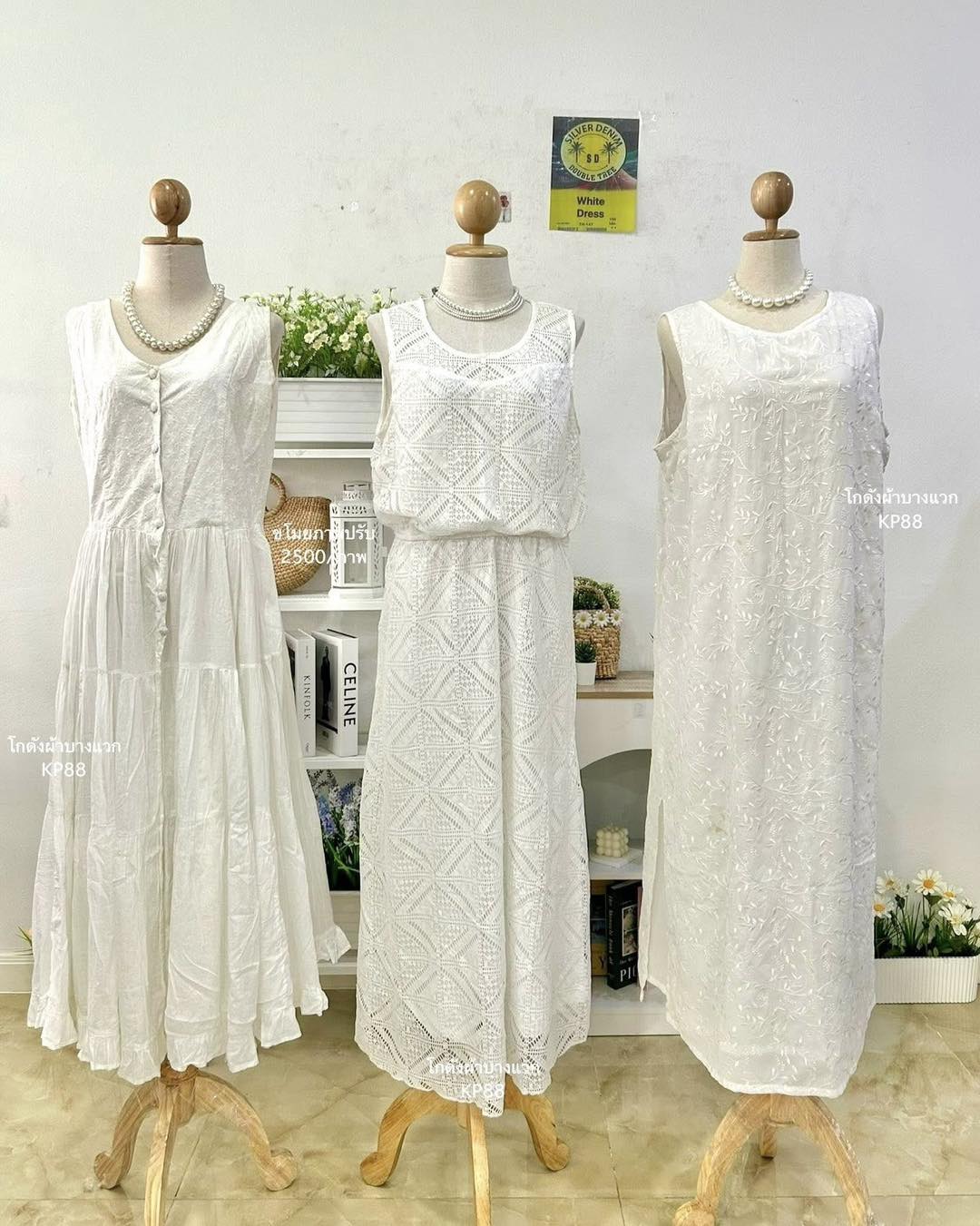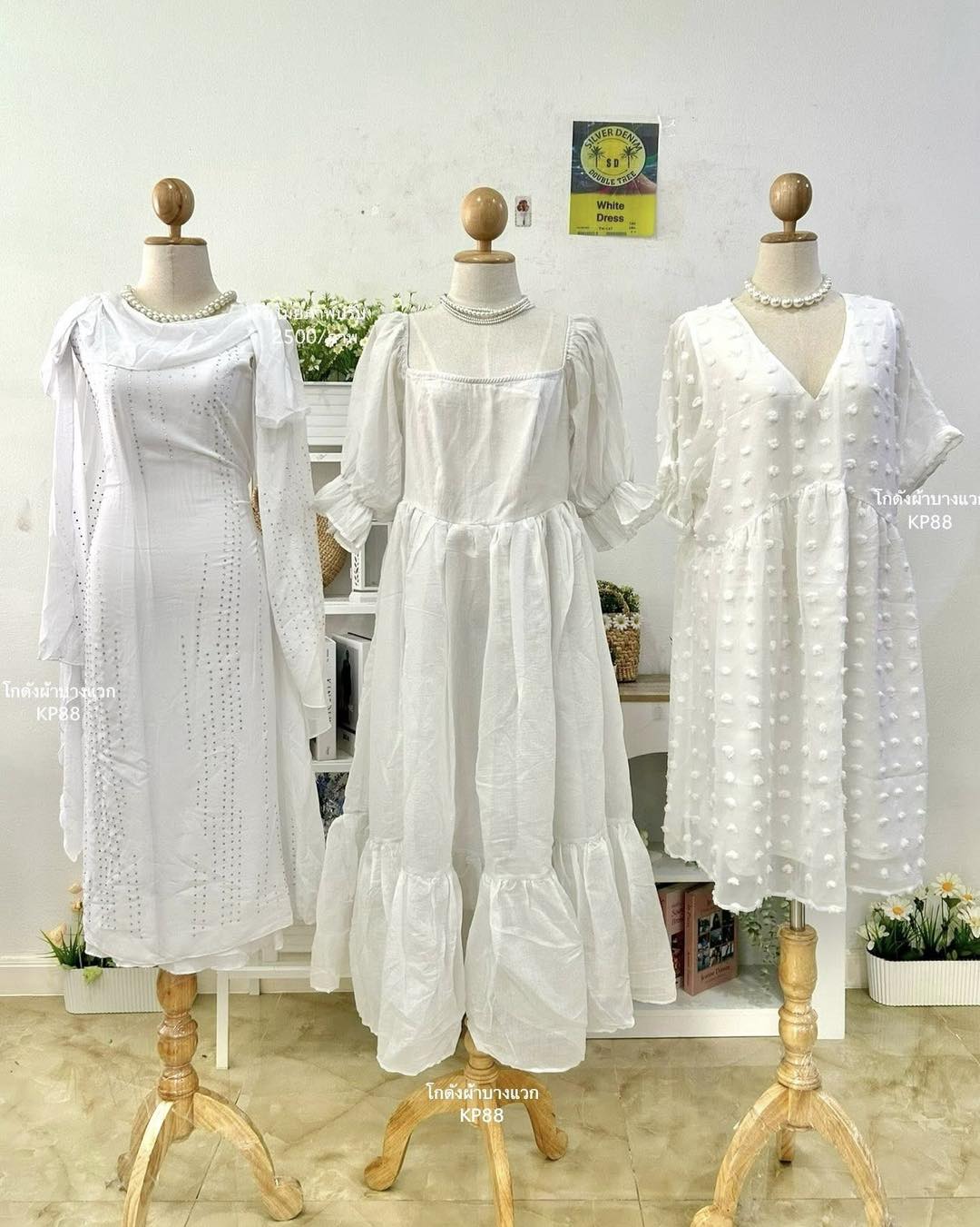 ༘ 𝑊ℎ𝑖𝑡𝑒 𝑑𝑟𝑒𝑠𝑠 ชุดเดรสขาวแฟชั่นป้ายSD